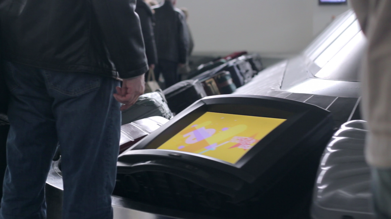 To promote the new app Watch&Travel USA for FOX TV, we placed a working TV on the luggage conveyor belt at the airport. This way, while people were bored waiting for their bags, they had the chance to learn about the mechanics of the app and how they could win trip to the USA.